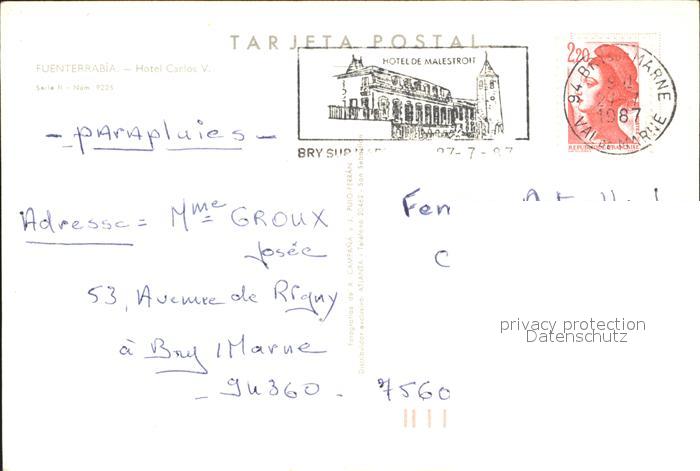 old postcard Fuenterrabia Hondarribia Hotel Carlos postalisch gelaufen Erhaltung siehe scans