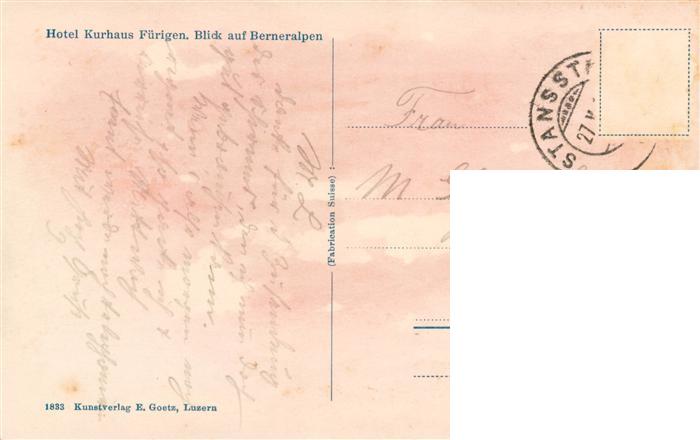 13920728 alte Postkarte Fuerigen Stansstad NW Hotel Kurhaus Fuerigen Blick auf Berner Alpen postalisch gelaufen Erhaltung siehe scans [FriedD77] KatCode: 11470140435278