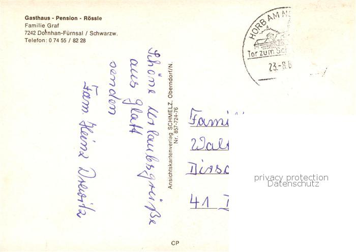 73813175 alte Postkarte Fuernsal Gasthaus Roessle Pension Panorama postalisch gelaufen Erhaltung siehe scans [WerneD78] KatCode: 11110008325012