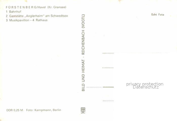 72728400 Fuerstenberg Havel Bahnhof Gaststaette Anglerheim Schwedtsee Musikpavillon Rathaus postalisch nicht gelaufen Erhaltung siehe scans [FriedD77] KatCode: 11110012065084