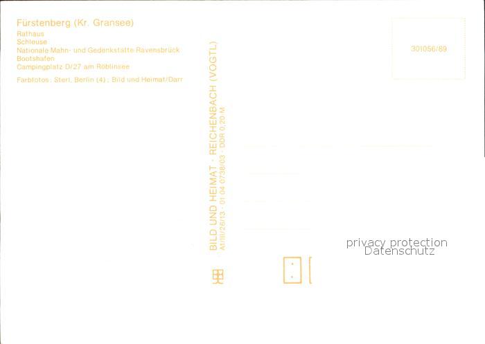 72372404 Fuerstenberg Havel Rathaus Schleuse Mahnstaette Gedenkstaette Ravensbrueck Bootshafen Campingplatz Roeblinsee postalisch nicht gelaufen Erhaltung siehe scans KatCode: 11110012065084