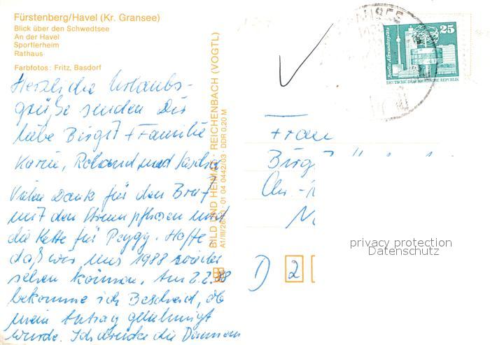 72958839 alte Postkarte Fuerstenberg Havel Schwedtsee Havel Sportlerheim Rathaus postalisch gelaufen Erhaltung siehe scans [FriedD77] KatCode: 11110012065084