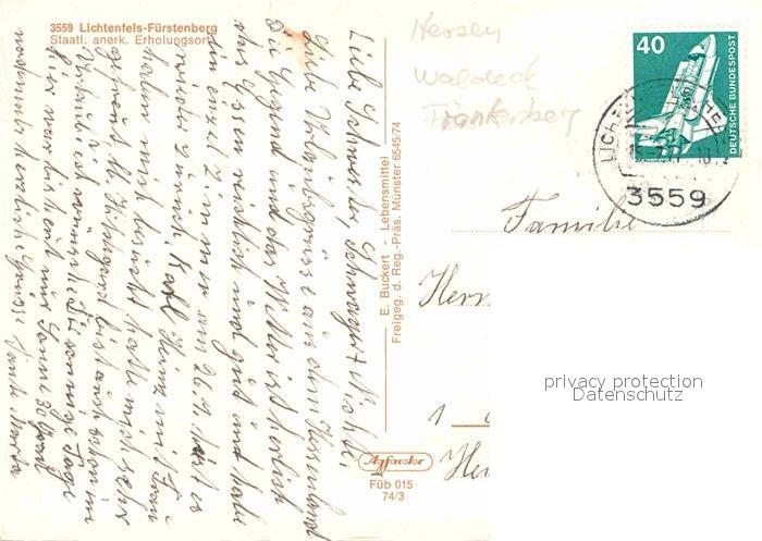 72916983 alte Postkarte Fuerstenberg Waldeck Fliegeraufnahme postalisch gelaufen Erhaltung siehe scans [FriedD77] KatCode: 11110006635016