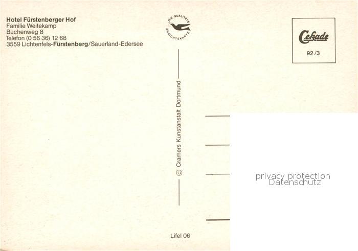 73087730 Fuerstenberg Waldeck Hotel Fuerstenberger Hof postalisch nicht gelaufen Erhaltung siehe scans [KathaD81] KatCode: 11110006635016