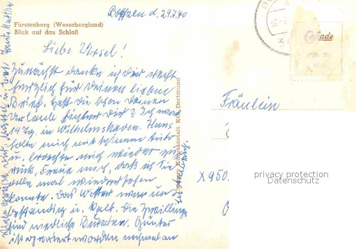 72616518 alte Postkarte Fuerstenberg Weser Blick auf das Schloss Ausflugsdampfer postalisch gelaufen Erhaltung siehe scans [FriedD77] KatCode: 11110003255014