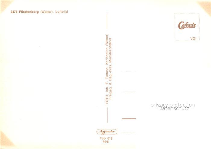 73620578 Fuerstenberg Weser Fliegeraufnahme postalisch nicht gelaufen Erhaltung siehe scans [FriedD77] KatCode: 11110003255014