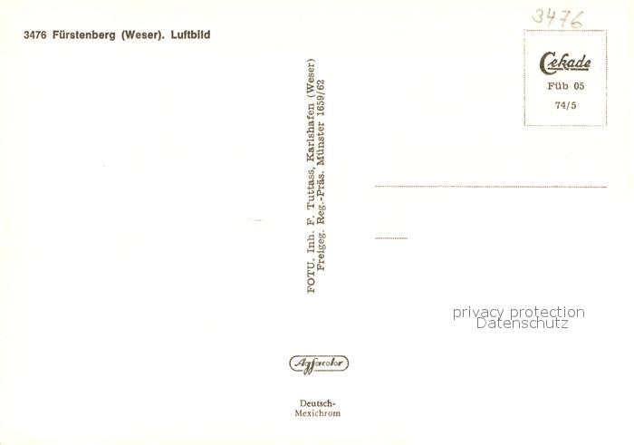 73169878 Fuerstenberg Weser Fliegeraufnahme postalisch nicht gelaufen Erhaltung siehe scans [KathaD81] KatCode: 11110003255014