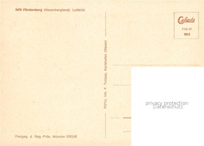 72948557 Fuerstenberg Weser Fliegeraufnahme postalisch nicht gelaufen Erhaltung siehe scans [KathaD81] KatCode: 11110003255014