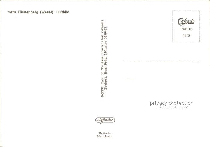 72215343 Fuerstenberg Weser Fliegeraufnahme postalisch nicht gelaufen Erhaltung siehe scans KatCode: 11110003255014