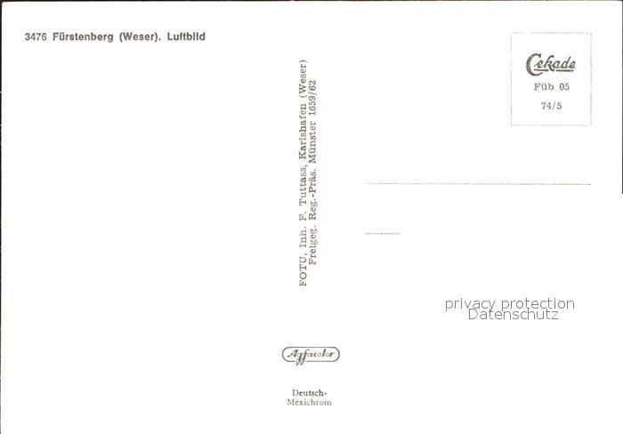 72106908 Fuerstenberg Weser Fliegeraufnahme postalisch nicht gelaufen Erhaltung siehe scans KatCode: 11110003255014
