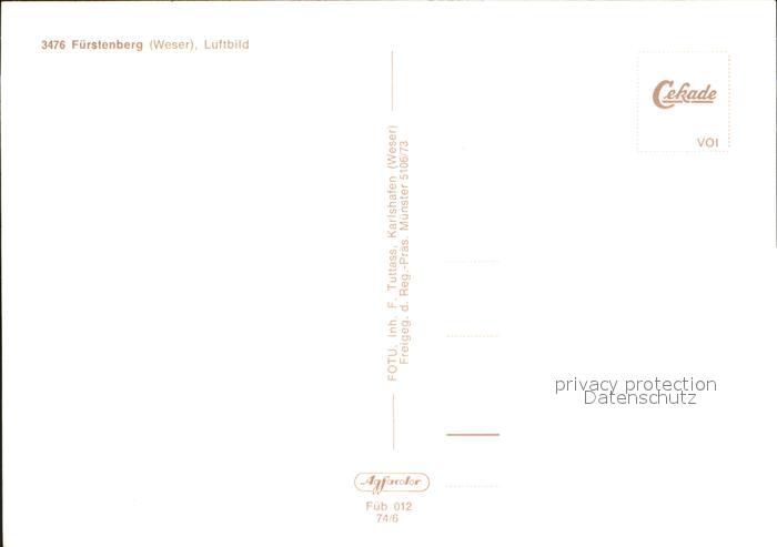 72066380 Fuerstenberg Weser Fliegeraufnahme postalisch nicht gelaufen Erhaltung siehe scans KatCode: 11110003255014