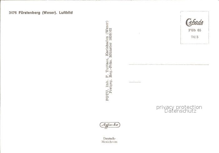 72062587 Fuerstenberg Weser Fliegeraufnahme postalisch nicht gelaufen Erhaltung siehe scans KatCode: 11110003255014