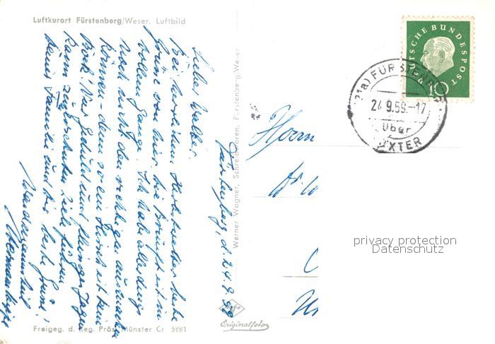 33045841 alte Postkarte Fuerstenberg Weser Fliegeraufnahme postalisch gelaufen Erhaltung siehe scans [NatalD47] KatCode: 11110003255014