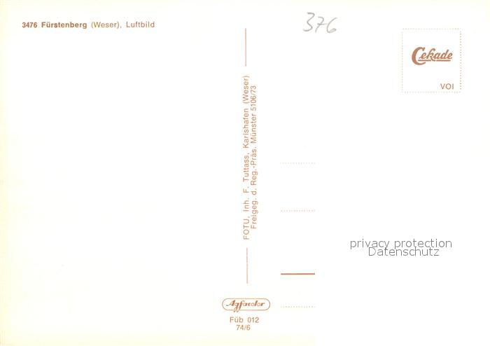 73648011 Fuerstenberg Weser Fliegeraufnahme postalisch nicht gelaufen Erhaltung siehe scans [WerneD78] KatCode: 11110003255014