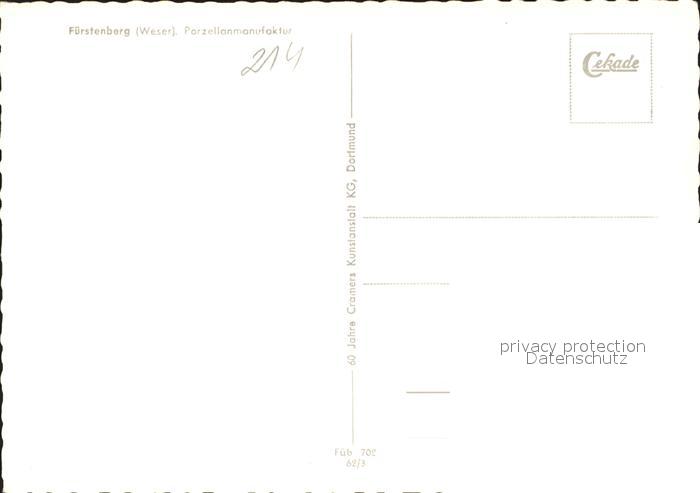 72017800 Fuerstenberg Weser Porzellanmanufaktur postalisch nicht gelaufen Erhaltung siehe scans KatCode: 11110003255014