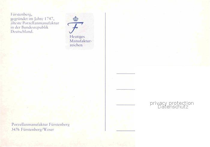 72674714 Fuerstenberg Weser Porzellanmanufaktur Markenzeichen postalisch nicht gelaufen Erhaltung siehe scans [WerneD78] KatCode: 11110003255014