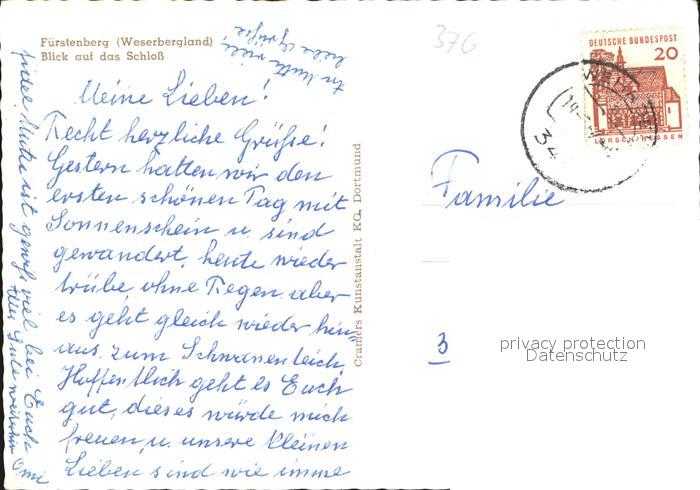72606515 alte Postkarte Fuerstenberg Weser Schloss Dampfer postalisch gelaufen Erhaltung siehe scans [NatalD47] KatCode: 11110003255014