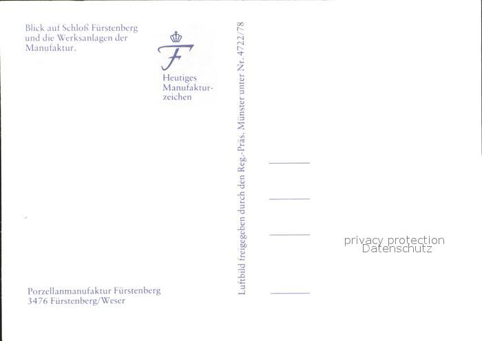 72370366 Fuerstenberg Weser Schloss Werksanlagen Manufaktur postalisch nicht gelaufen Erhaltung siehe scans KatCode: 11110003255014