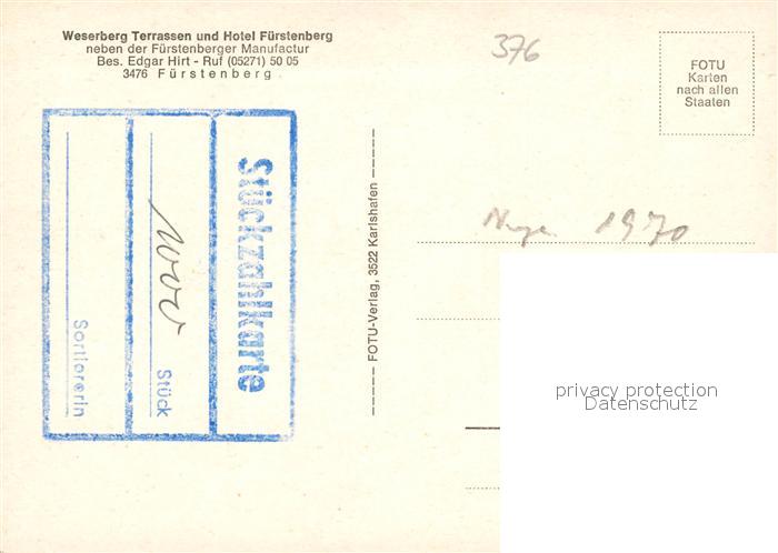 73047516 Fuerstenberg Weser Weserberg Terrassen und Hotel Fuerstenberg Gastraum Strassenpartie postalisch nicht gelaufen Erhaltung siehe scans [WerneD78] KatCode: 11110003255014
