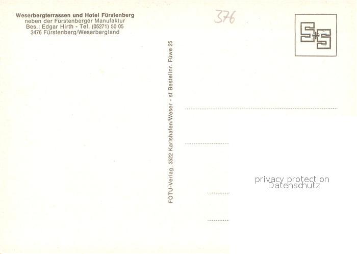 73047519 Fuerstenberg Weser Weserberg Terrassen und Hotel Fuerstenberg Gastraum Terrasse postalisch nicht gelaufen Erhaltung siehe scans [WerneD78] KatCode: 11110003255014