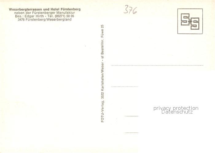 73047515 Fuerstenberg Weser Weserberg Terrassen und Hotel Fuerstenberg Gastraum Terrasse postalisch nicht gelaufen Erhaltung siehe scans [WerneD78] KatCode: 11110003255014