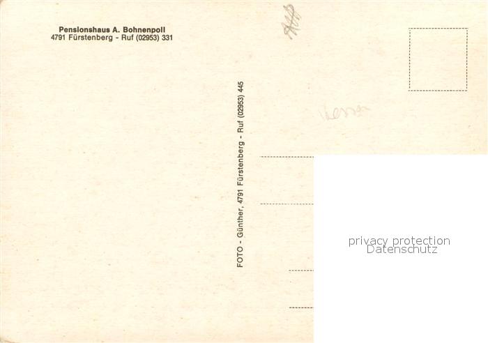 73724070 Fuerstenberg Westfalen Pensionshaus A. Bohnenpoll postalisch nicht gelaufen Erhaltung siehe scans [LiesaD40] KatCode: 11110005774040