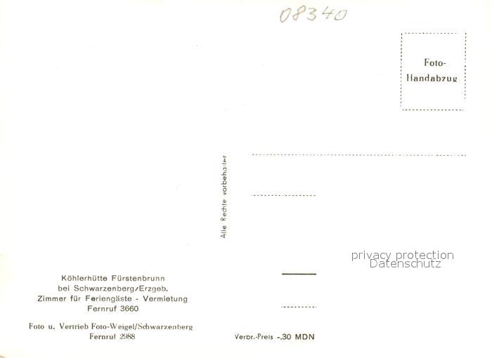 73565420 Fuerstenbrunn Schwarzenberg Koehlerhuette postalisch nicht gelaufen Erhaltung siehe scans [FriedD77] KatCode: 11110014191300