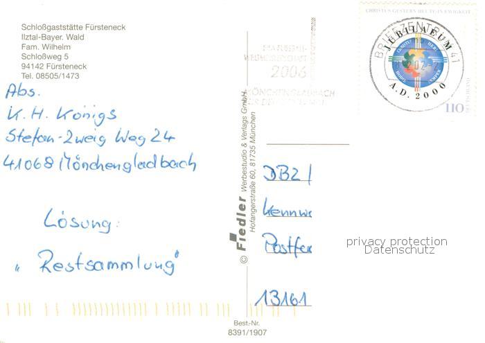 73707803 alte Postkarte Fuersteneck Schlossgaststaette im Ilztal Bayerischer Wald postalisch gelaufen Erhaltung siehe scans [FriedD77] KatCode: 11110009272119