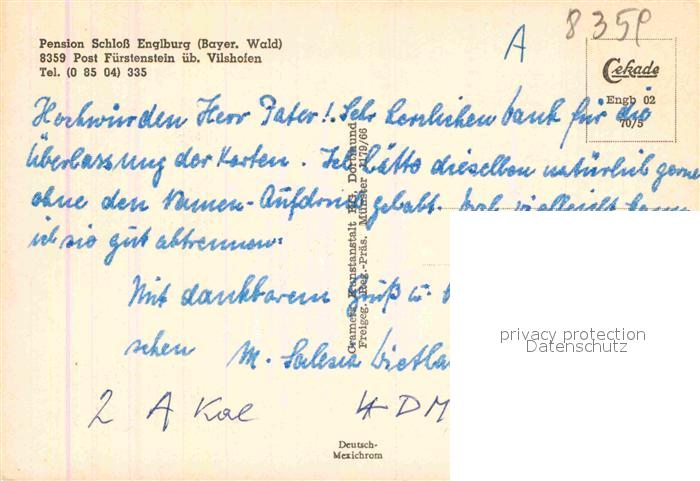 72837264 Fuerstenstein Niederbayern Pension Schloss Englburg Fliegeraufnahme postalisch nicht gelaufen Erhaltung siehe scans [WerneD78] KatCode: 11110009275121