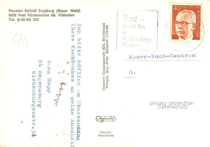 73249770 alte Postkarte Fuerstenstein Niederbayern Pension Schloss Englsburg Fliegeraufnahme postalisch gelaufen Erhaltung siehe scans [WerneD78] KatCode: 11110009275121