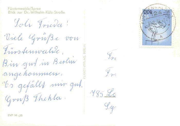 73975754 alte Postkarte Fuerstenwalde Spree Blick zur Dr. Wilhelm-Kuelz-Strasse Gaststaette postalisch gelaufen Erhaltung siehe scans [FriedD77] KatCode: 11110012067144