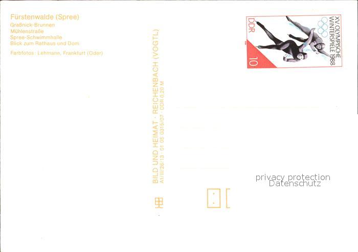 72138299 Fuerstenwalde Spree Grassnick Brunnen Muehlenstrasse Schwimmhalle Rathaus Dom Wappen postalisch nicht gelaufen Erhaltung siehe scans KatCode: 11110012067144