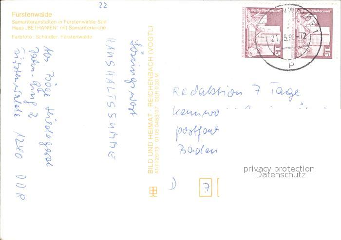 72416200 alte Postkarte Fuerstenwalde Spree Haus Bethanien Samariterkirche postalisch gelaufen Erhaltung siehe scans KatCode: 11110012067144