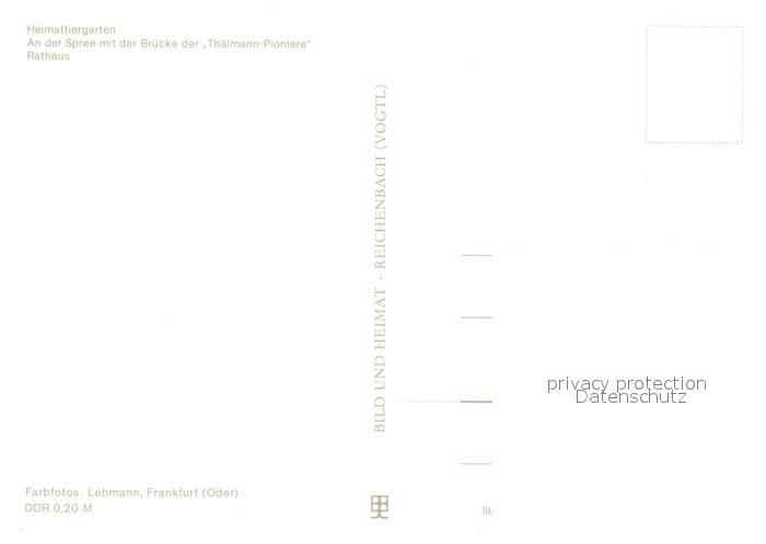 73089212 Fuerstenwalde Spree Heimattiergarten Bruecke Thaelmann-Pioniere Rathaus postalisch nicht gelaufen Erhaltung siehe scans [NatalD47] KatCode: 11110012067144