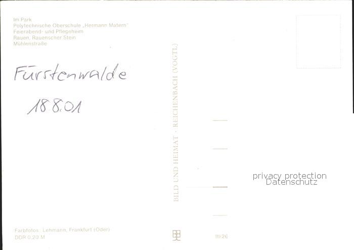 72124717 Fuerstenwalde Spree Im Park Polytechn Oberschule Feierabendheim Rauen Rauenscher Stein Muehlenstr postalisch nicht gelaufen Erhaltung siehe scans KatCode: 11110012067144
