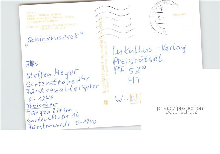 72538615 Fuerstenwalde Spree Rathaus Dom Figuren an der Thaelmannstr Juri Gagarin Oberschule postalisch nicht gelaufen Erhaltung siehe scans [WerneD78 kt117box] KatCode: 11110012067144
