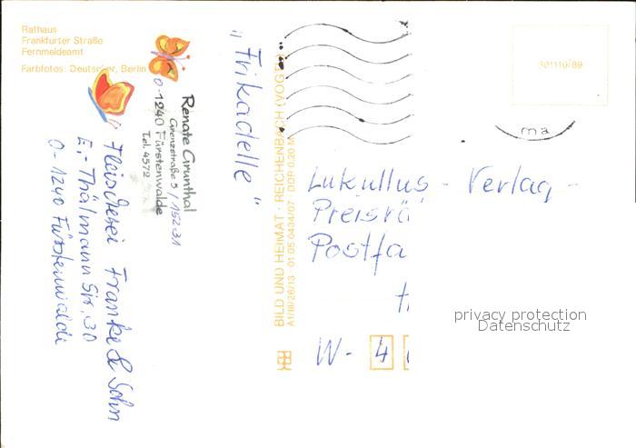 72525733 alte Postkarte Fuerstenwalde Spree Rathaus Frankfurter Strasse Fernmeldeamt postalisch gelaufen Erhaltung siehe scans KatCode: 11110012067144