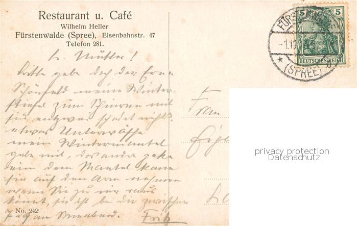 73821483 alte Postkarte Fuerstenwalde Spree Restaurant und Cafe am Markt postalisch gelaufen Erhaltung siehe scans [WerneD78] KatCode: 11110012067144