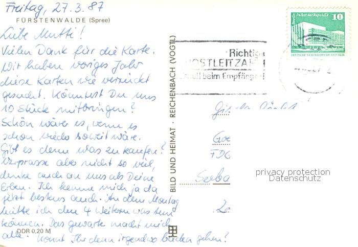 73722959 alte Postkarte Fuerstenwalde Spree Schwimmhalle Details postalisch gelaufen Erhaltung siehe scans [WerneD78] KatCode: 11110012067144