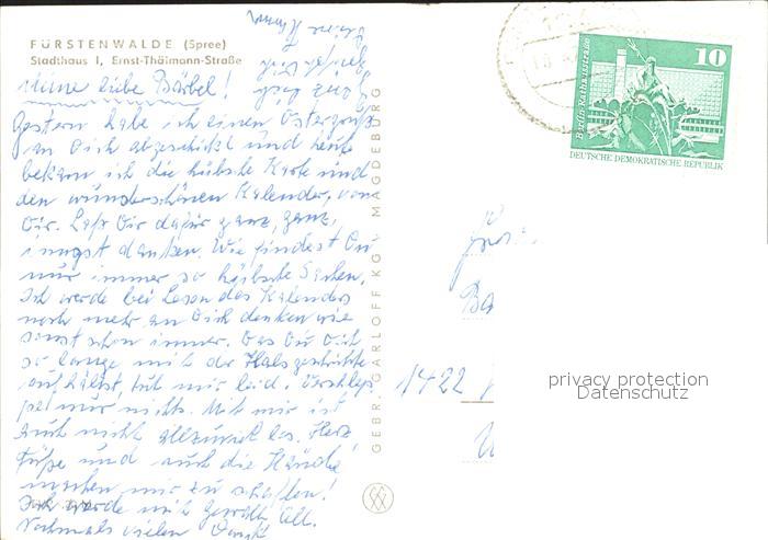 72079073 alte Postkarte Fuerstenwalde Spree Stadthaus Ernst Thaelmann Strasse postalisch gelaufen Erhaltung siehe scans KatCode: 11110012067144