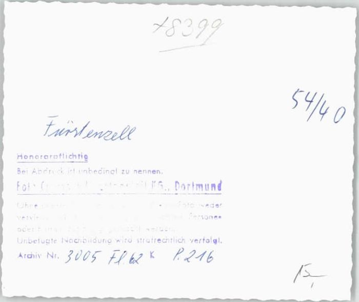 40222322 Fuerstenzell Fuerstenzell Fliegeraufnahme o 1962 KatCode 11110009275122