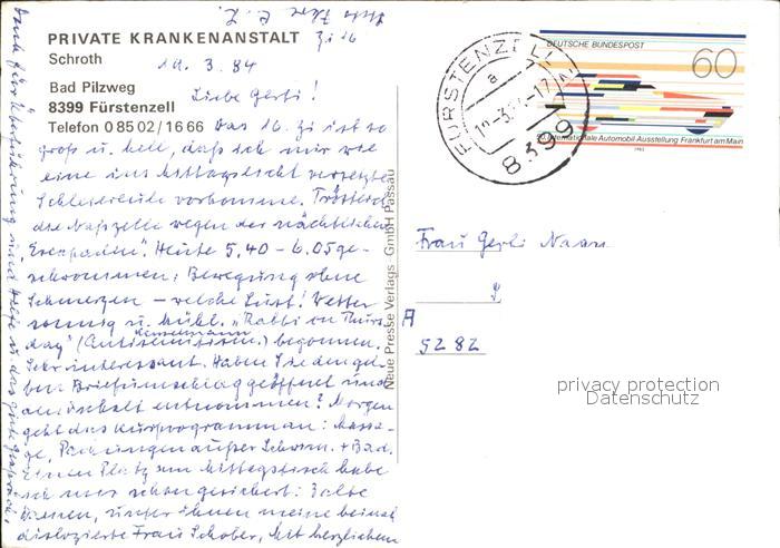 72465818 alte Postkarte Fuerstenzell Priv Krankenanstalt postalisch gelaufen Erhaltung siehe scans KatCode: 11110009275122