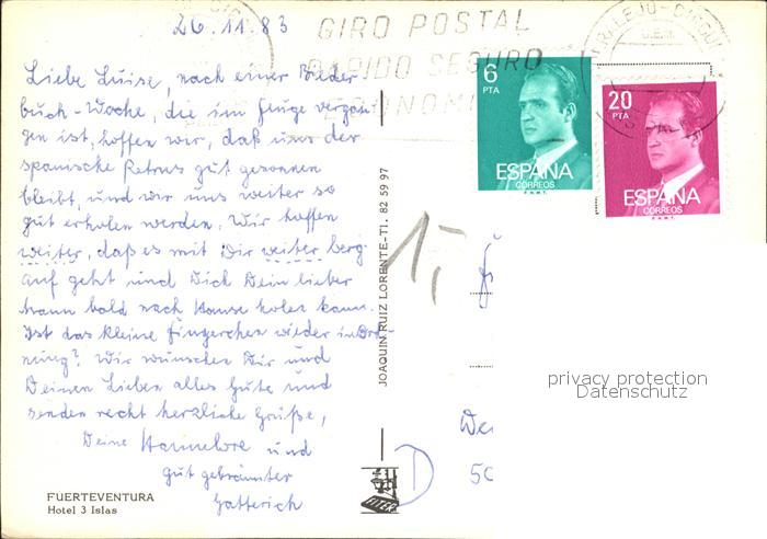 old postcard Fuerteventura Hotel 3 Islas postalisch gelaufen Erhaltung siehe scans