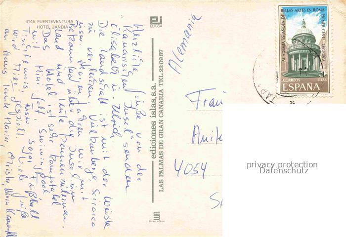 74155995 old postcard Fuerteventura Hotel Jandia postalisch gelaufen Erhaltung siehe scans [WerneD78] KatCode: 11510