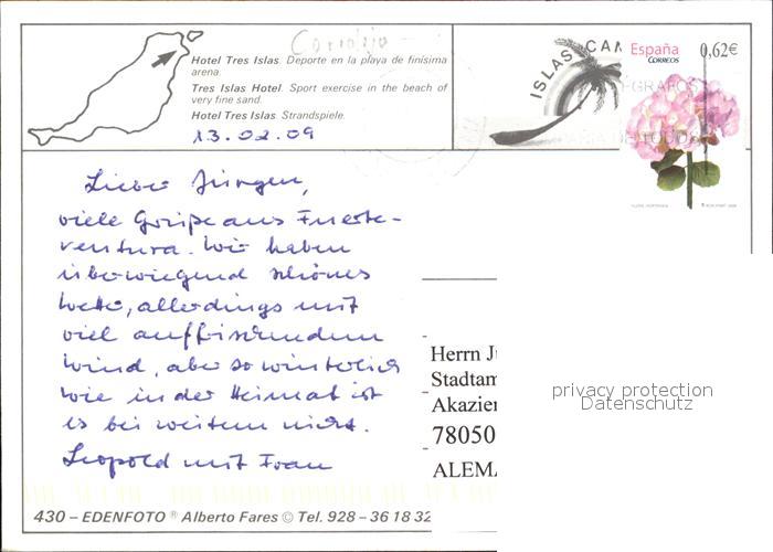 old postcard Fuerteventura Hotel Tres Islas Strand postalisch gelaufen Erhaltung siehe scans [LiesaD40]