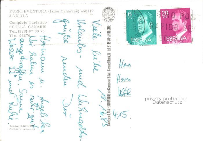 old postcard Fuerteventura Jandia Stella Canaris Swimmingpool postalisch gelaufen Erhaltung siehe scans