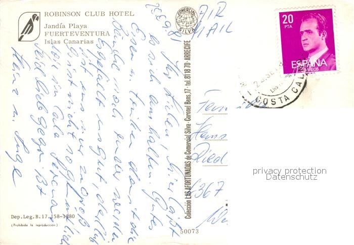 old postcard Fuerteventura Kanarische Inseln Robinson Club Hotel Jandia Playa postalisch gelaufen Erhaltung siehe scans [PaolaD17]