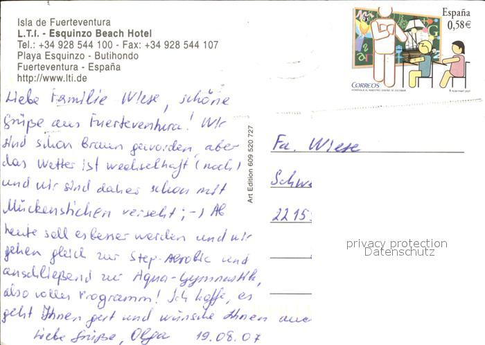 old postcard Fuerteventura LTI Esquinzo Beach Hotel Pools postalisch gelaufen Erhaltung siehe scans