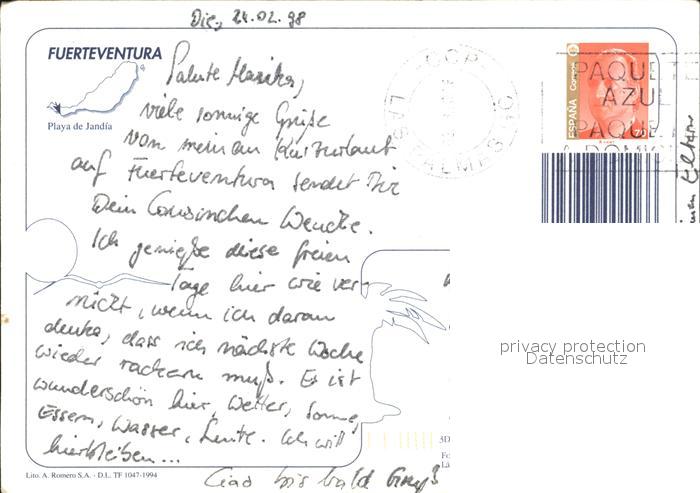 old postcard Fuerteventura Playa de Jandia postalisch gelaufen Erhaltung siehe scans