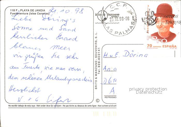 old postcard Fuerteventura Playa de Jandia postalisch gelaufen Erhaltung siehe scans